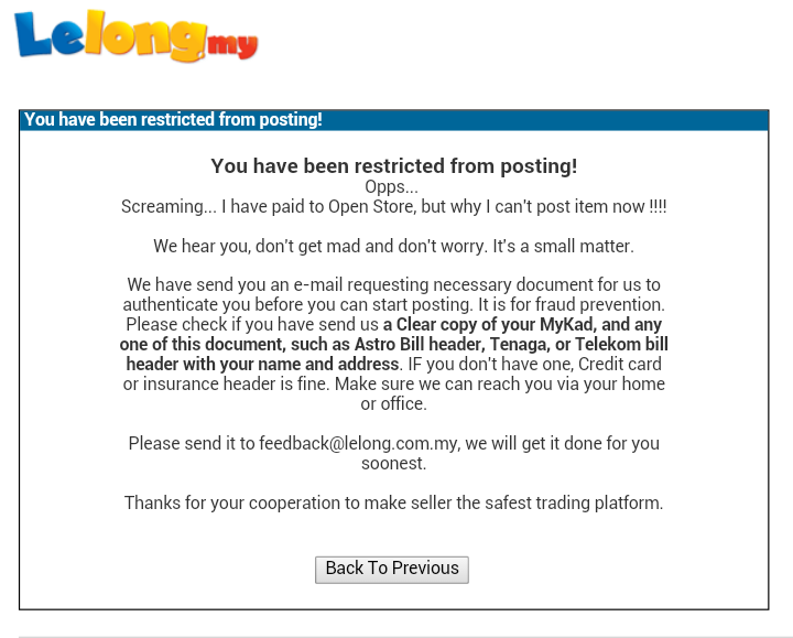 Please send it to feedback@lelong.com.my, we will get it done for you soonest.